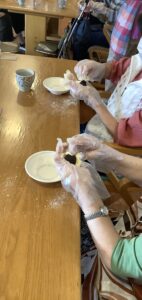 栄養士が生地とあんこをあらかじめ用意し、ご利用者様におまんじゅうを包んでいただきました。