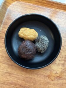 ご飯を潰して成型し、あんこ・きなこ・ごまをまぶしていただきました🫘